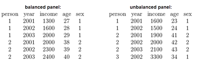 - Balanced: all individuals in the sample are followed from 1 to T