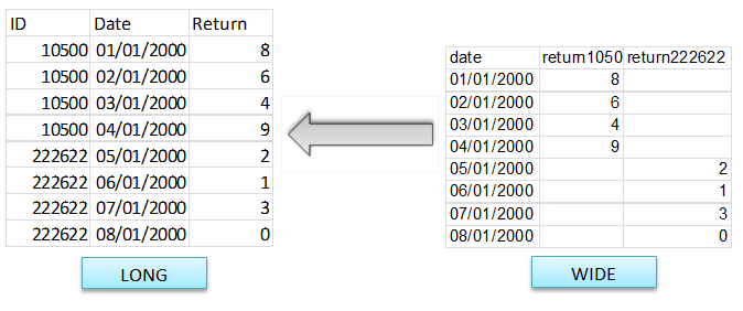 - we tend to prefer here the long format (w.r.t id and date)