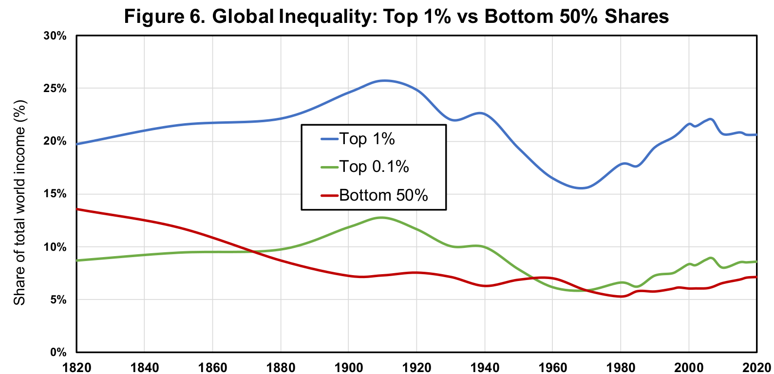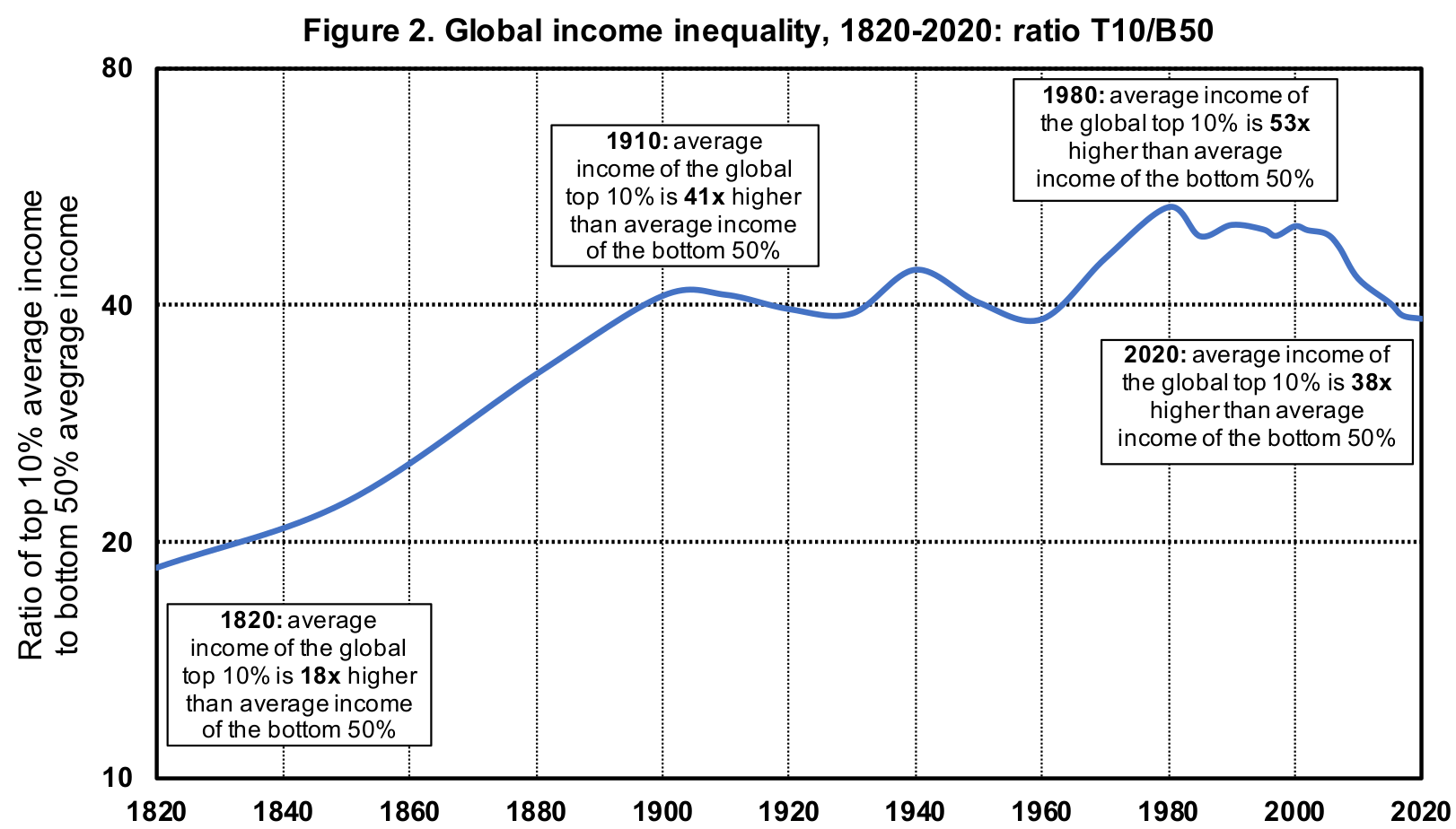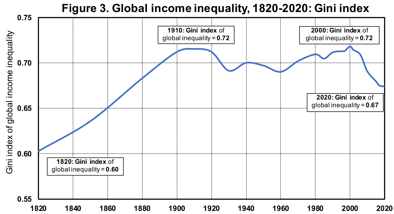 Global income inequality, 1820-2020