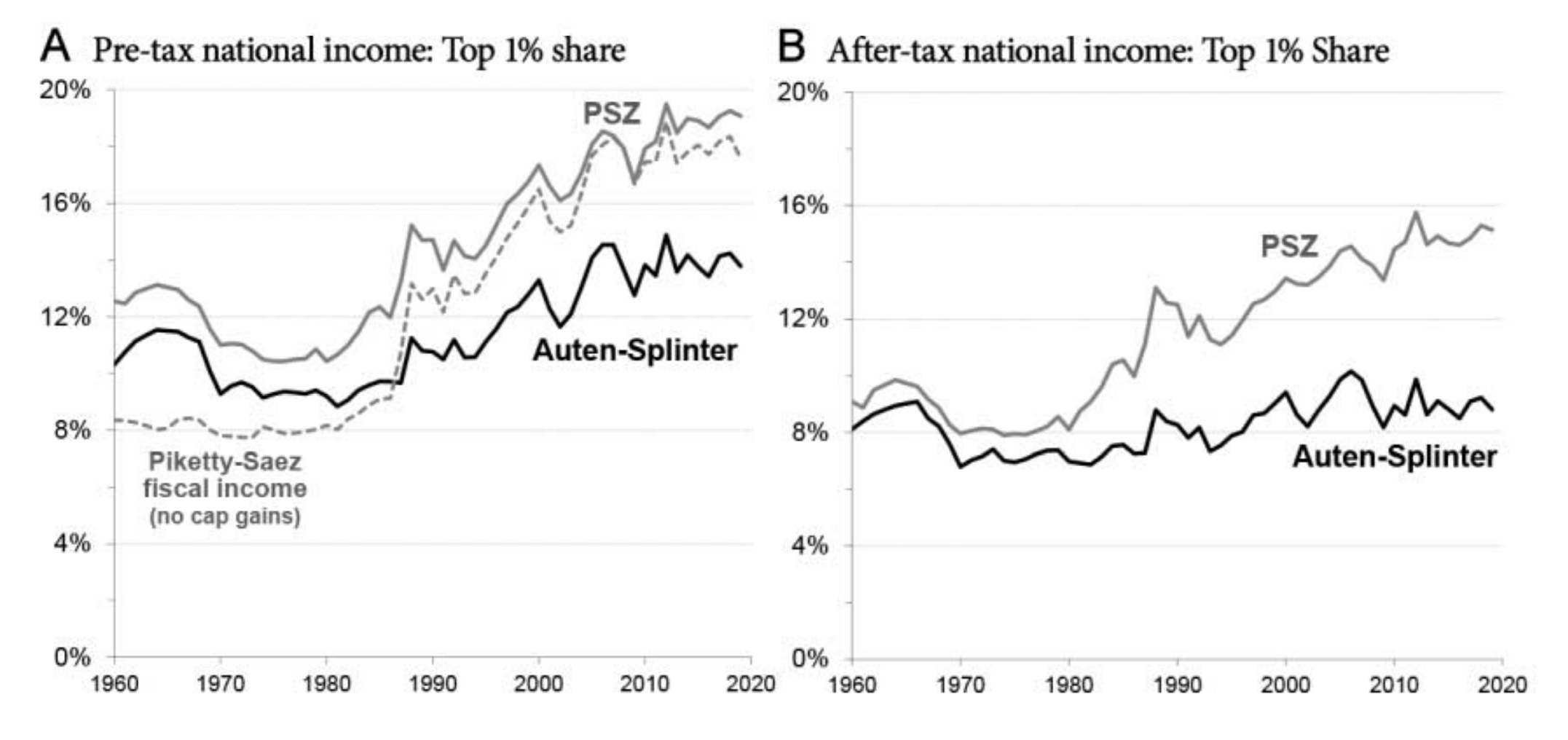 In Income Inequality in the United States: Using Tax Data to Measure Long-Term Trends (JPE, 2024), Auten and Splinter challenge Piketty, Saez and Zucman’s estimates of US income inequality trends.