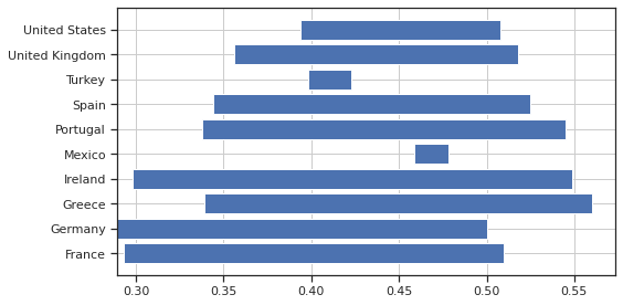 Here is the result for France with 10 quantiles (deciles)