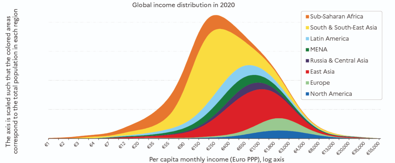 Our new series reveal that, around the turn of the 21st century, the within- country component of global inequality has become greater than the between-country component. In contemporary capitalism, an individual’s income group (i.e. whether they belong to the bottom 50%, top 1%, etc. in their own country) now matters more than their nationality (where they live) in the determination of global inequality levels.