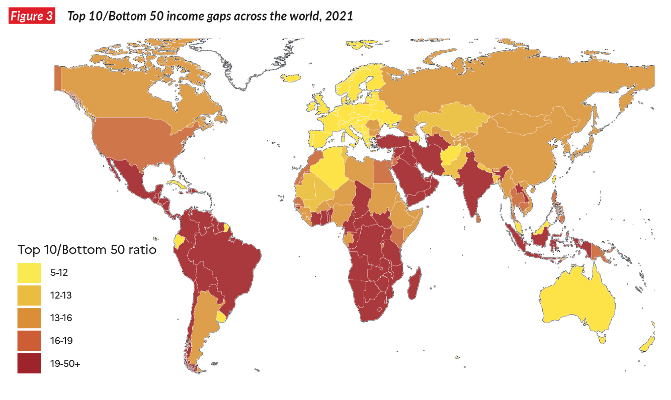 ⇒ Level of inequality that we currently observe in the most unequal countries in the world, such as South Africa, Brazil, Mexico and the United Arab Emirates (see Chapter 1). In brief: in terms of inequality and concentration of resources and economic power, the world today is and has long been like a giant South Africa.