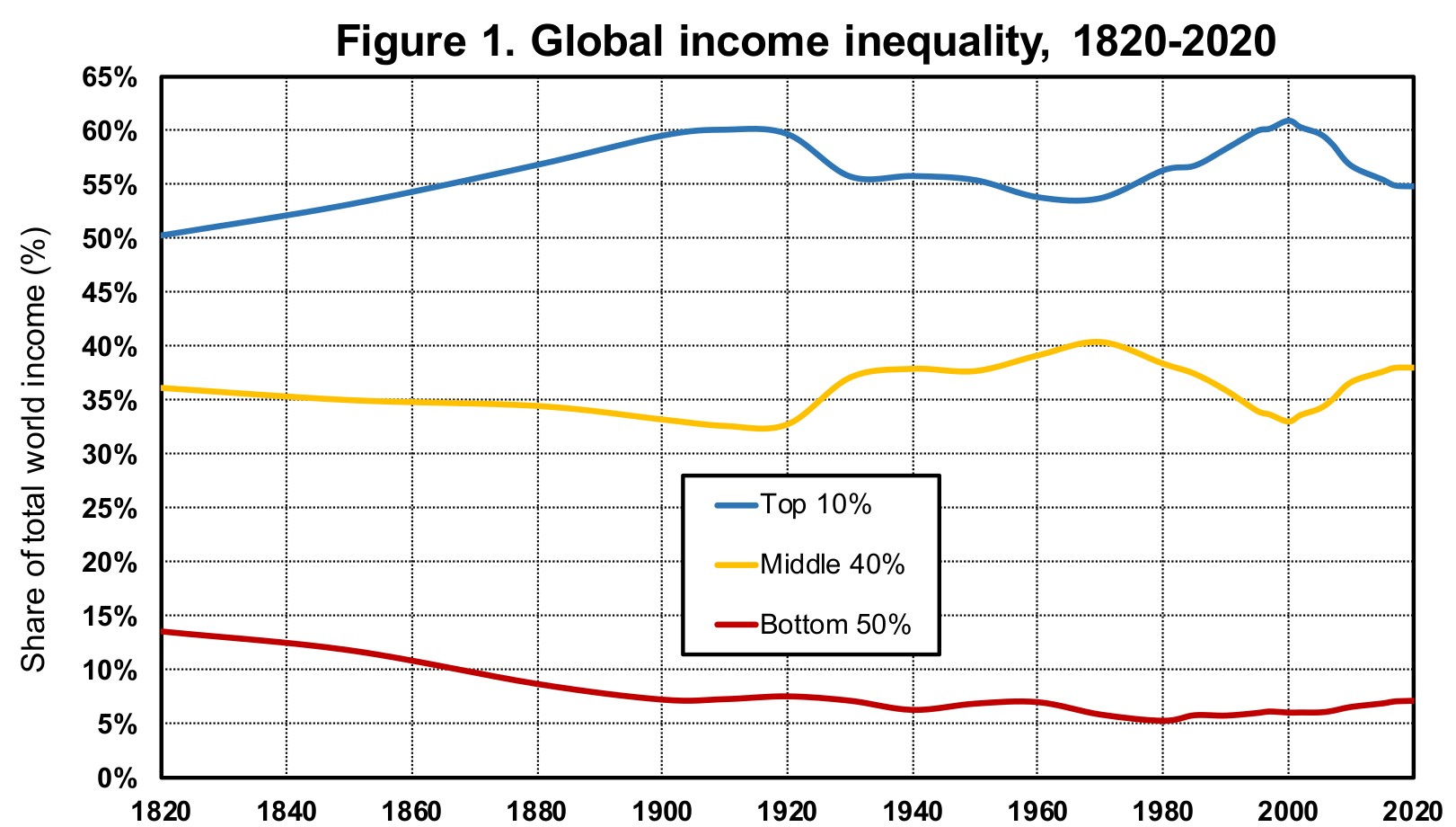 Global income inequality, 1820-2020